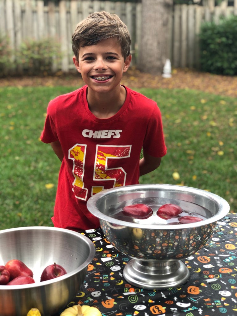 Hayden’s turn…He took off his glasses, so he could really bob for apples! He was the champ of his round.