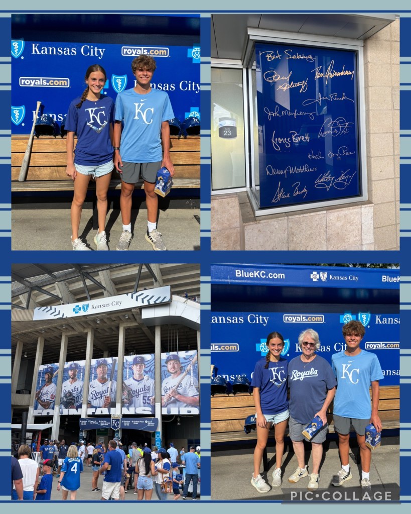 Going to the Royals game on our KC visit reminded me of the first time we took the kids to a Royals game. It was 2016…and the Royals had won the World Series in 2015. They were really excited to go to their first MLB game, and Kaufman Stadium had lots of kids’ activities and memorabilia to keep them busy.