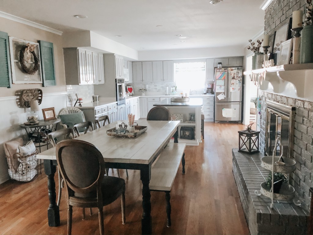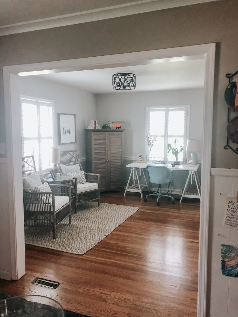 In my last post, I mentioned how we turned the formal living room into our main living space. Then, we used the dining room for a bit before turning it into an office area. Those rooms connect to the kitchen area.