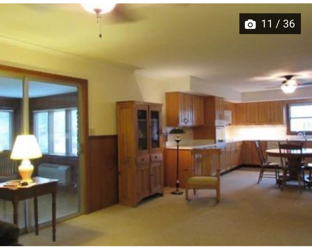 The previous owners used part of the kitchen space for their kitchen and the other half of the space for their informal living area.