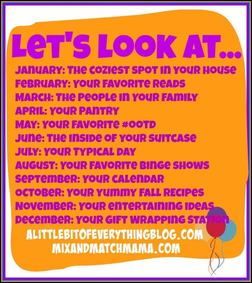 Next month’s topic is Let’s Look At…Your Weekend. Why do I have the feeling my post will be about how my weekdays and weekends look quite similar these days?! I’m hoping we are somewhat back to normal very very soon.