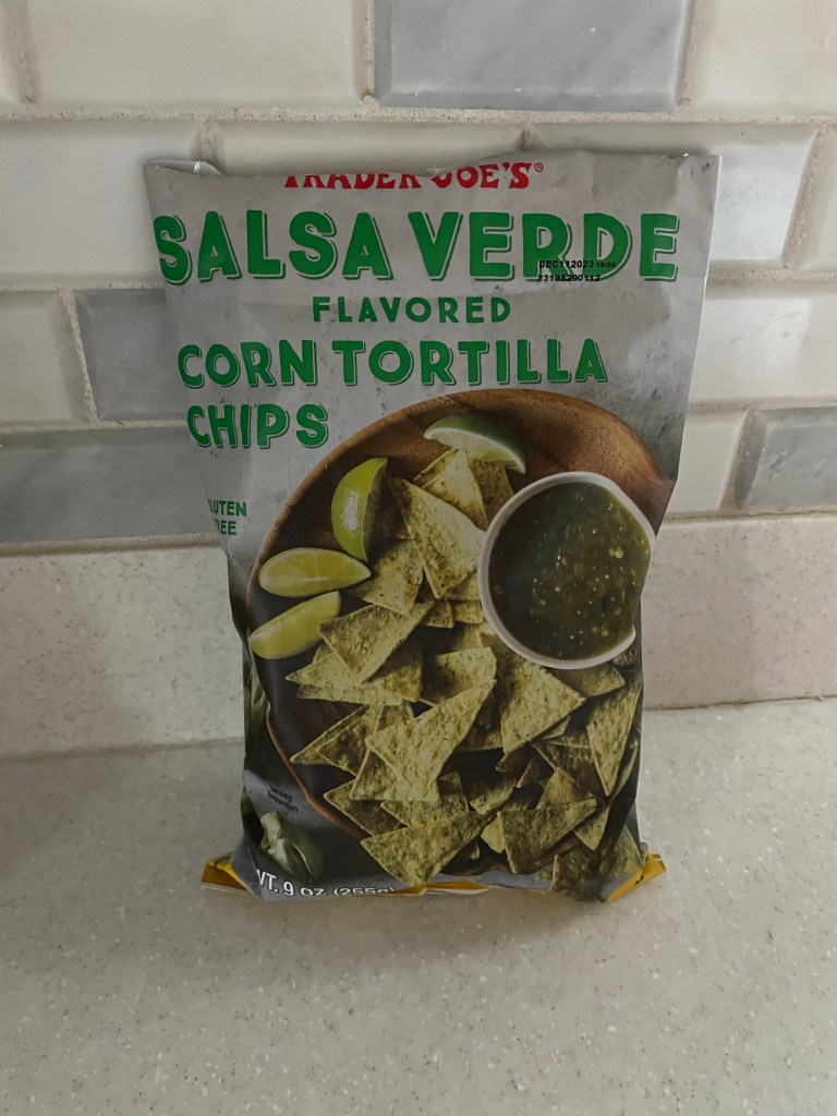 Hadley and I went to Trader Joe’s on Monday after school and the Salsa Verde tortilla chips were one of the samples. I had one chip and knew we needed to bring a bag home. Lol.