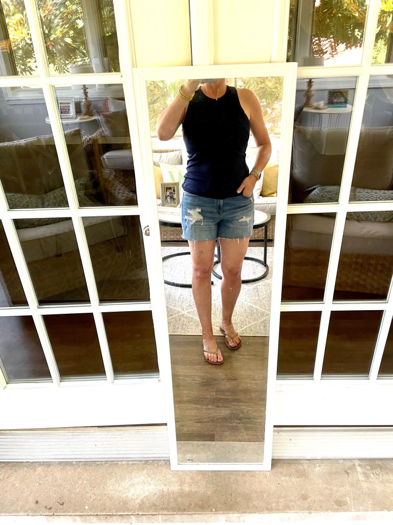 Ok, I’m not a fan of wearing shorts…I’m a leggings girl all the way. That being said, `Regan (@thebloomingnest) shared these flutter athletic shorts, and I decided to give them a try. I always size up in athletic shorts (just my preference!), and that’s what I did with these. I now have them in navy and black, and I really like them. Again, I got them on sale, but they come in quite a few colors with a $20 price tag. The “All in Motion” brand has been a good one for me.