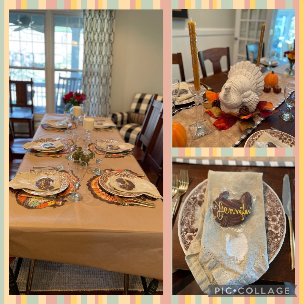 My dad’s cousin hosts that side of the family, and there are probably thirty people there…my cousin outdoes herself with the tablescape and place settings.