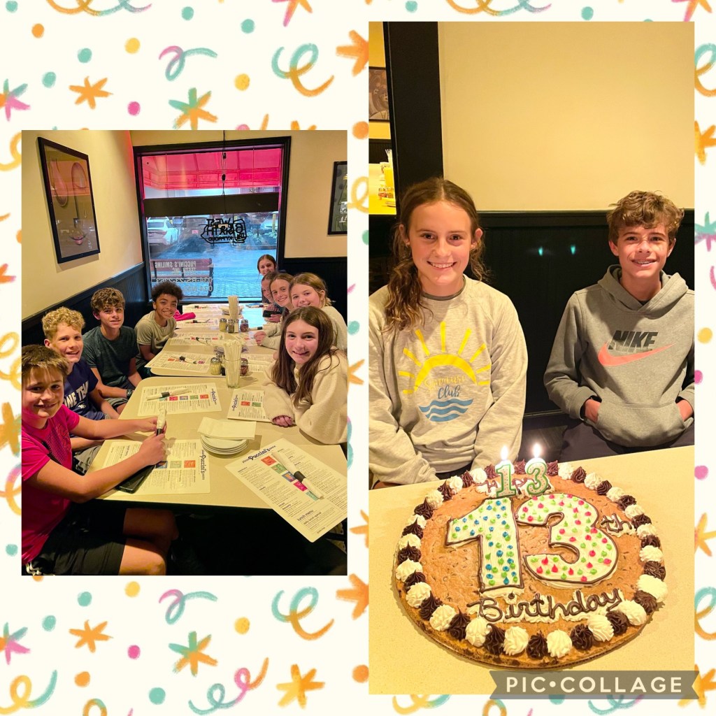 The plan was to drop everyone off after dinner, but they were all very convincing that they wanted to play outside for a bit. So, boys vs. girls volleyball in our driveway burned a bit more energy. Everyone was home by 9:00, and it was a great party for a bunch of almost 13 year olds!