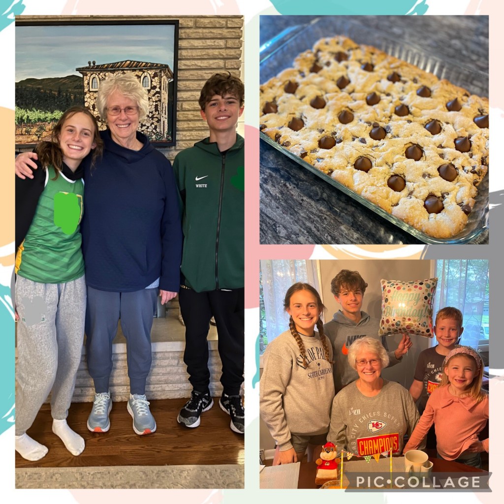 Since my mom was in town, we celebrated her birthday a bit early with dinner at my brother’s house on Sunday. We brought dessert. Hadley made these Peanut Butter Blossom Bars, and they were a hit.