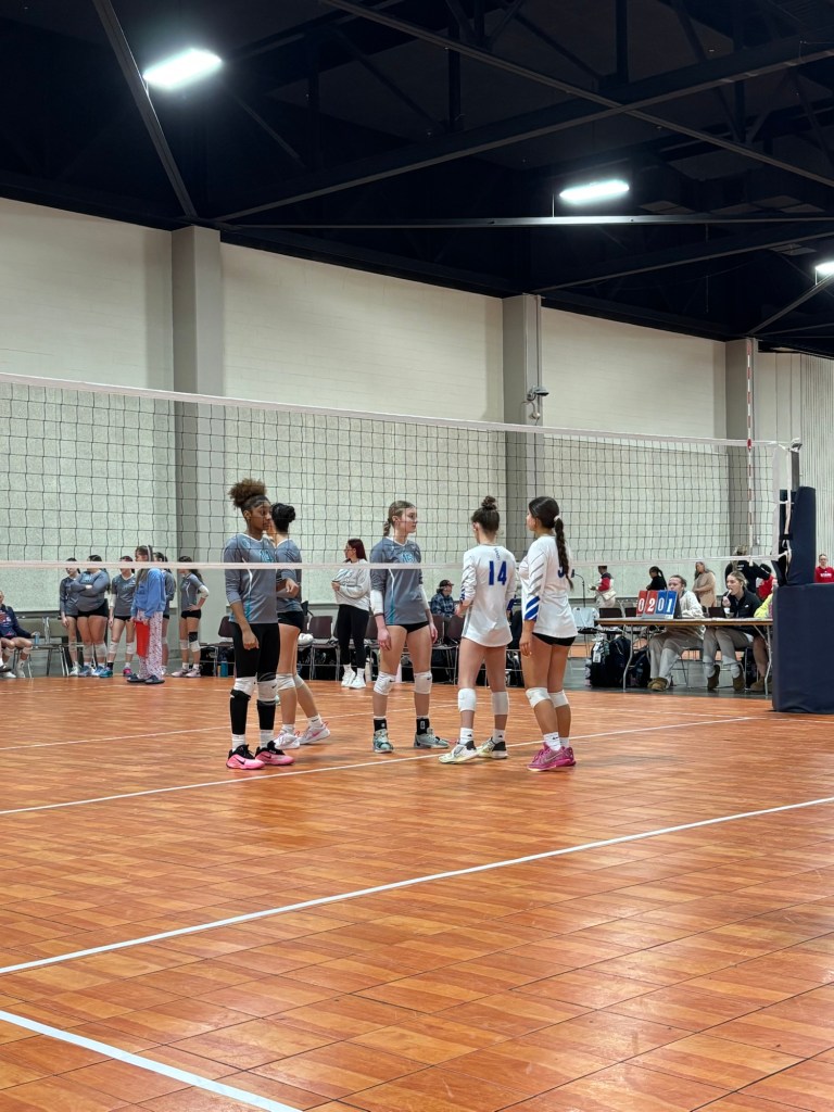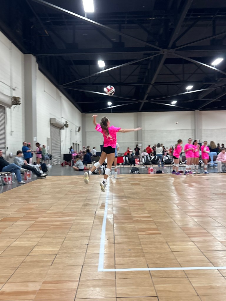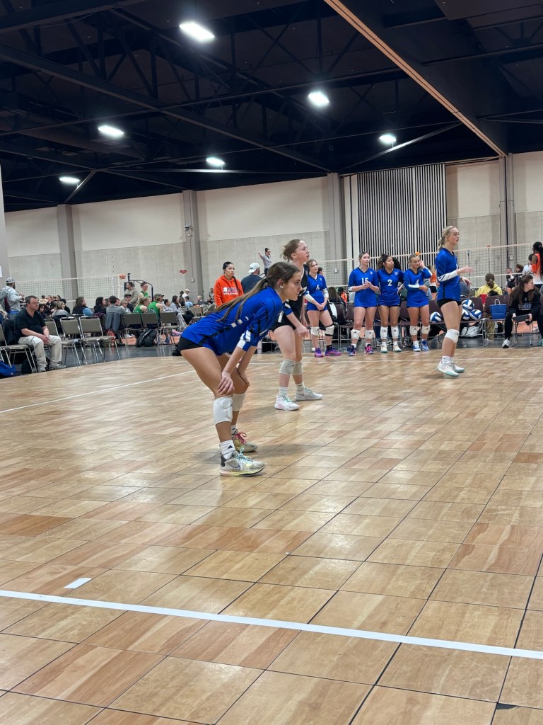 This was a three day tournament…I’m not sure why (LOL!). The girls made it to the silver bracket on Monday morning. We were down a hitter, so Hadley played all around on Monday. I laugh when my 5’3″ daughter playing front row, but she had some good hits AND a couple of blocks. She was so happy!