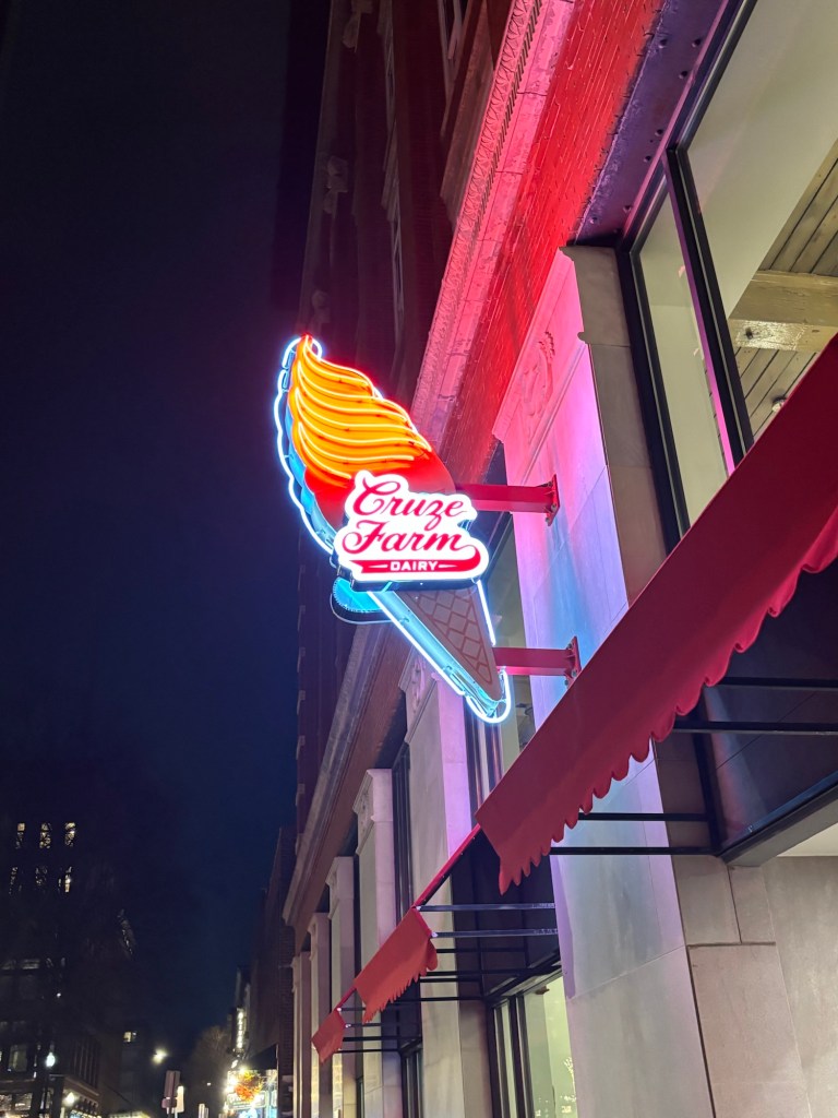 We walked back to the hotel which was around the corner from the Tennessee Theater. I’d seen this lit up sign in photos, so it was as surprise to walk right past it.